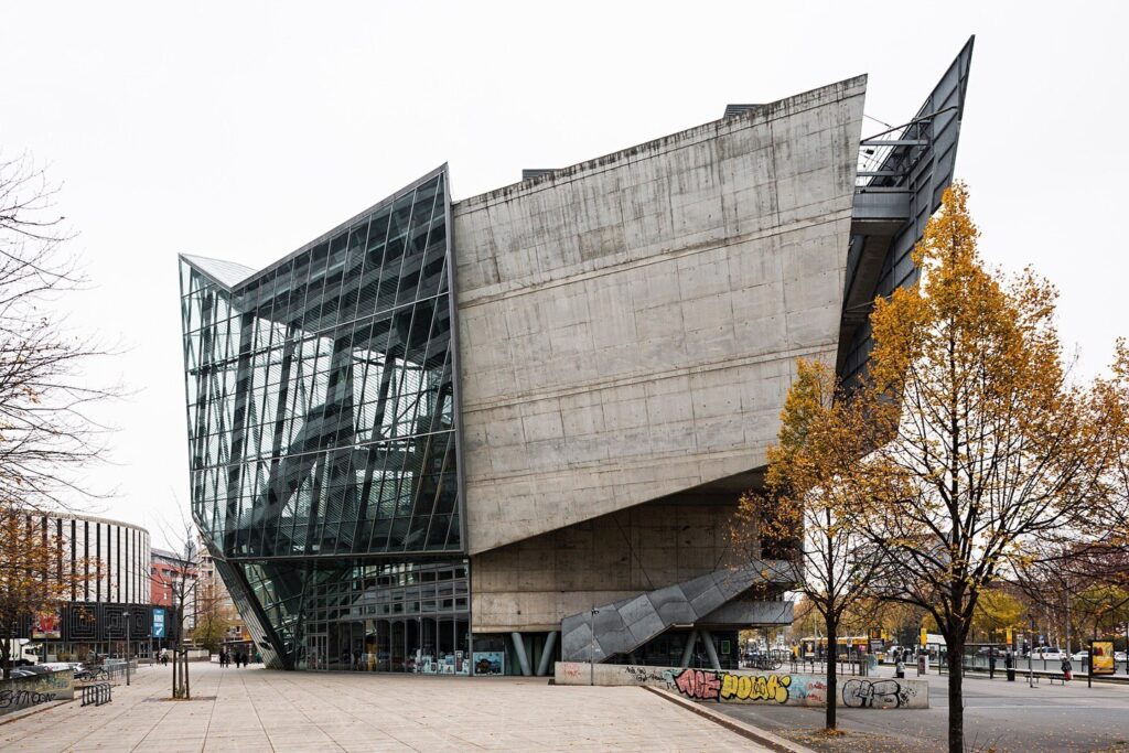 مرکز سینمایی یوفا در درسدن آلمان که توسط استودیوی کوپ هیملب(ل)آو طراحی شده، یکی از مشهورترین نمونههای معماری دکانستراکتیویسم در جهان است. این ساختمان با نمای غیرمتعارف و ساختارشکن خود که عمدتاً از بتن ساخته شده، بین سالهای ۱۹۹۳ تا ۱۹۹۸ ساخته شد.