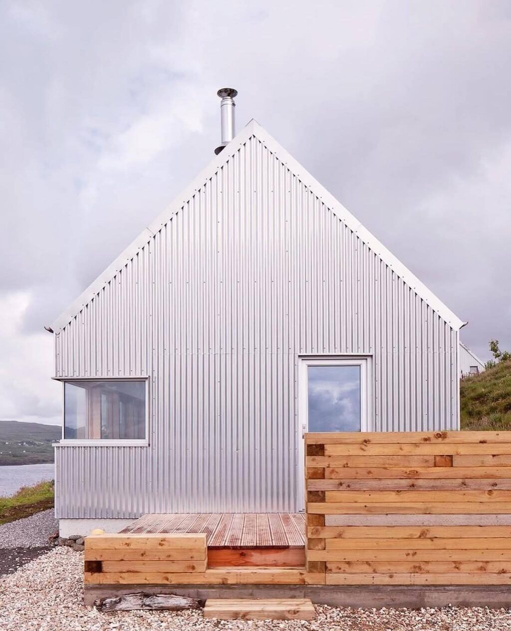 پروژه معماری «تینهاوس» در شمال غربی جزیره اسکای اسکاتلند، یک اثر شاخص در طراحی خانههای کوچک است که با الهام از ساختمانهای کشاورزی منطقه طراحی شده است. این خانه که روی یک شیب تند و مشرف به تنگه مینیچ ساخته شده، از ورقهای فلزی موجدار به عنوان مصالح اصلی استفاده کرده و توانسته است با ترکیب بتن، چوب و فلز، یک فضای داخلی مدرن با هویتی روستایی خلق کند.