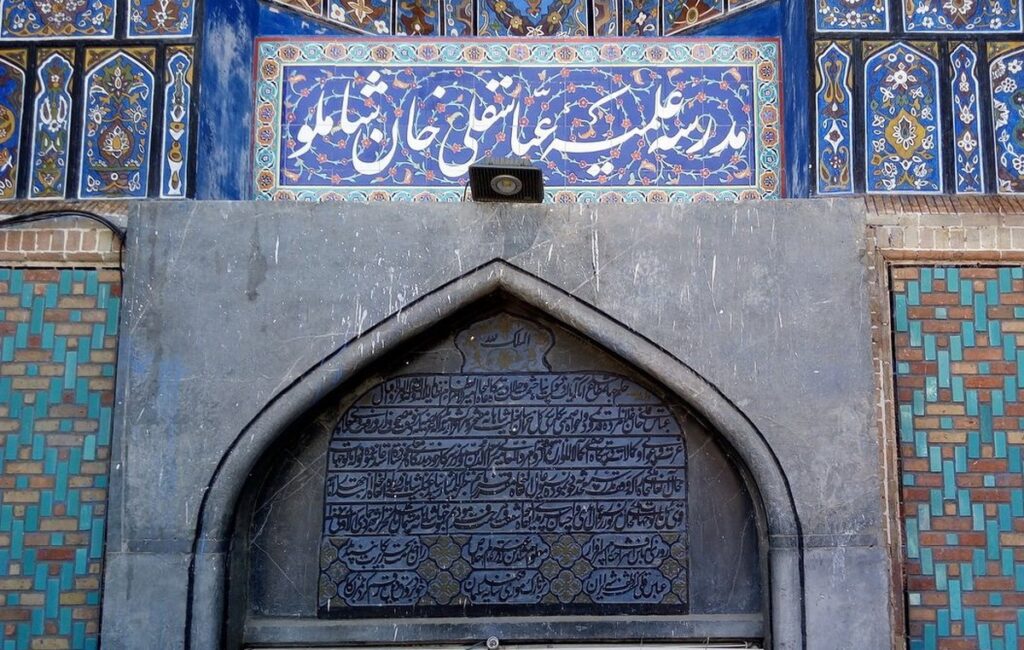 بر اساس کتیبه ای که در پیشانی این مدرسه که موقوفه عباسقلی خان شاملو می باشد نوشته شده است، عباسقلی خان آن را در زمان شاه سلیمان صفوی در سال ۱۰۷۷ هجری قمری در دو طبقه و به صورت چهار ایوانی است بنا نموده است.